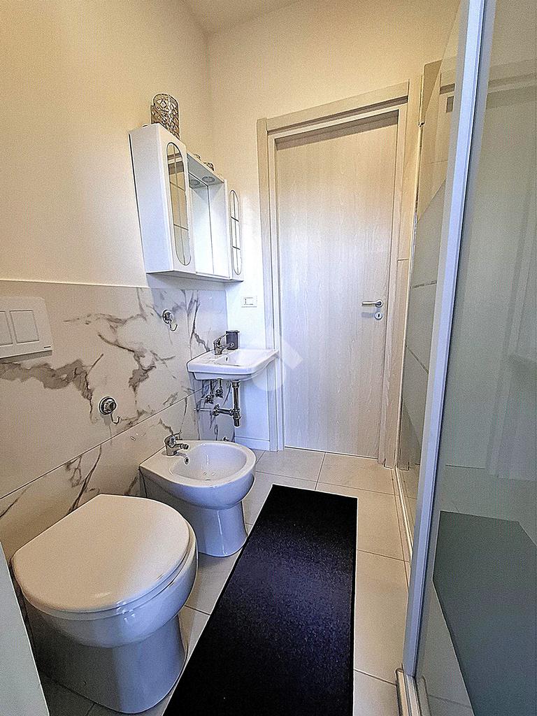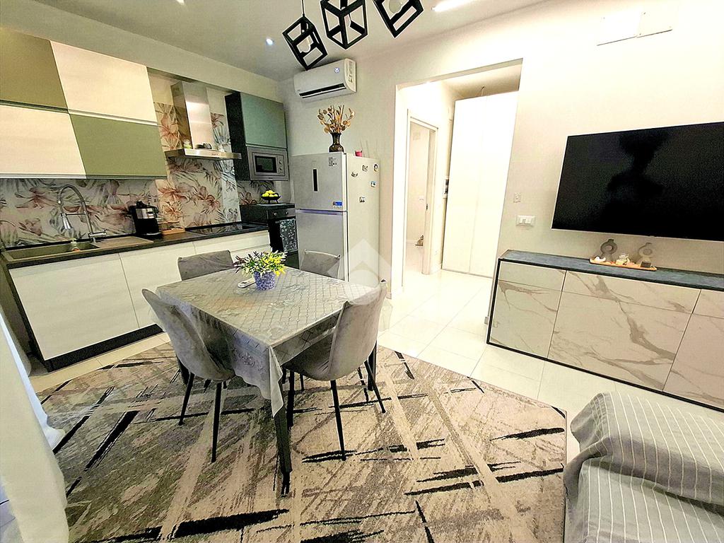 GOLOSINE. Completamente ristrutturato nel 2024, in ottima classe energetica, luminoso appartamento al terzo piano dotato di tre camere da letto e tre bagni, tutti finestrati. L'immobile si compone di: ingresso, sala con cucina a vista, tre camere da letto, ognuna delle quali servita da bagno. Tutti i bagni dispongono di doccia. Tre balconi. Cantina al piano interrato. Climatizzazione con quattro split e riscaldamento autonomo con pompa di calore. Tutte le tapparelle sono motorizzate elettricamente. Isolamento realizzato sulle pareti perimetrali con cappotto termico interno. Impianti con certificazioni di conformità. L'appartamento è completamente ammobiliato e accessoriato, con possibilità di acquisto dell'arredamento. Ampio parcheggio pubblico davanti all'edificio
